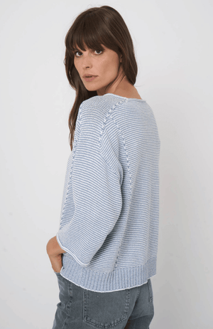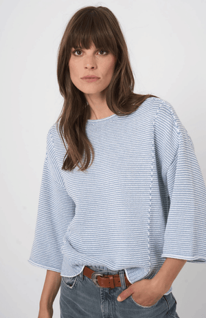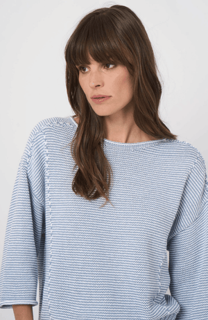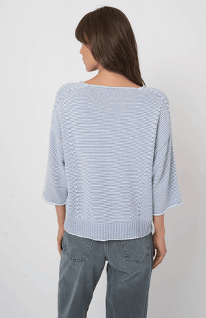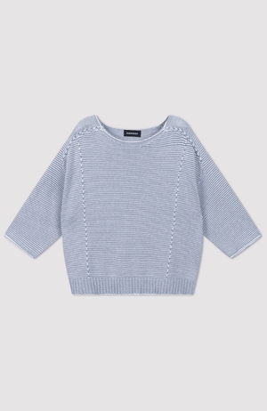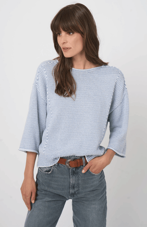 Introducing an essential from REPEAT cashmere: a refined striped cotton sweater that embodies understated elegance. Constructed from 100% pure cotton in a substantial medium weight, this piece features sophisticated two-tone striping and diagonal-knit detailing that elevates its visual depth. The boat neckline, finished with a delicate rolled edge, frames the shoulders with timeless grace, while generously proportioned 3/4 sleeves and a relaxed, boxy silhouette create an effortlessly luxurious silhouette. Ribbed hems ensure a polished finish. Versatile enough to transition seamlessly from weekday refinement to weekend ease—layer it over a crisp tee or beneath a tailored jacket for endless styling possibilities.