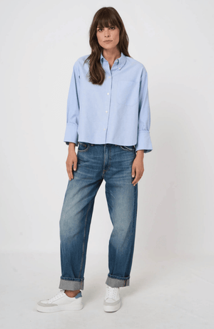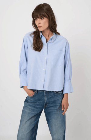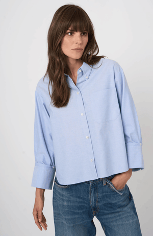 Effortless elegance meets refined craftsmanship in this cotton blouse, defined by its signature French cuff detailing and graceful three-quarter sleeves. Cut in a relaxed silhouette that drapes with understated sophistication, this piece embodies the art of timeless dressing. The serene ocean hue—a versatile neutral with subtle depth—transitions seamlessly from casual to elevated styling, pairing beautifully with denim for an understated luxury aesthetic or layered beneath tailored pieces for refined versatility