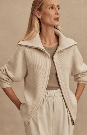ENRICO ZIP-THROUGH KNIT JACKET in SILVER BIRCH