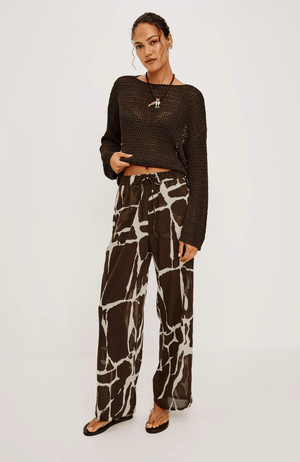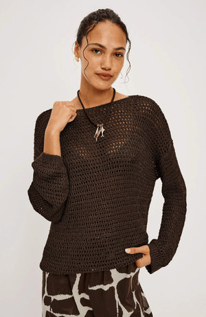 The Evangeline sweater epitomizes understated elegance—a masterwork in refined simplicity. Crafted from a sumptuous linen-blend knit, its open-weave construction reveals an artisanal attention to detail, while the graceful boat neckline frames the shoulders with effortless sophistication. The relaxed silhouette drapes with intentional ease, embodying the essence of contemporary luxury. In rich espresso, this piece transcends seasonal trends, becoming an essential foundation for the discerning wardrobe.
