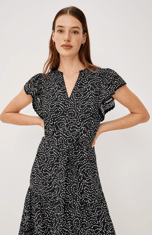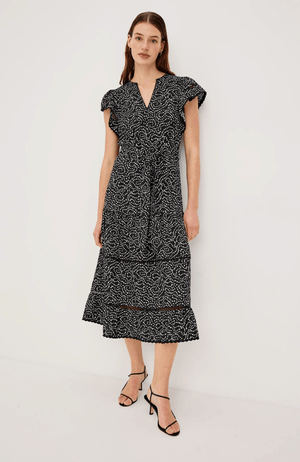 The Gia Dress effortlessly transitions from everyday elegance to special occasions. Crafted from crisp cotton poplin, this midi silhouette features delicate flutter sleeves and a gracefully tiered skirt that creates movement and dimension. The Mini Chain Daisies print adds a refined botanical touch, making it a versatile essential for any refined wardrobe.