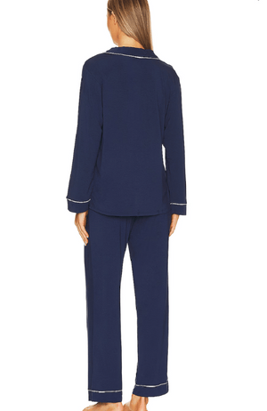 Experience timeless comfort with the GISELE LONG PJ SET, crafted from luxurious TENCEL™ Modal fibers blended with a touch of elastane. This ultra-soft, OEKO-TEX® Standard 100 certified fabric ensures gentle, non-toxic wear. Featuring elegant contrast piping, a button-front top with a classic notch collar and functional pocket, and low-rise straight-leg pants with a discreet elastic waistband, this set redefines relaxed sophistication. Perfectly paired with everyday lingerie, it invites you to unwind in effortless style and serenity.