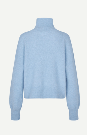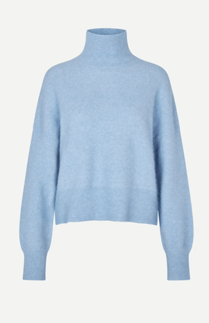 The NOLA Sweater in Della Robbia Blue is crafted from a soft wool blend and features a timeless stand neck design in a stunning ice blue shade. This elegant piece offers both warmth and sophistication, perfect for elevating your cold-weather wardrobe. Complete your look by pairing it with the matching NOR beanie hat for a coordinated and polished finish.