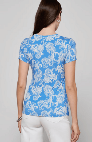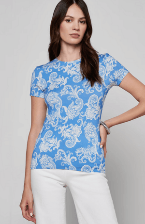The Ressi Fitted Tee is the cornerstone piece every wardrobe deserves. This perennial bestseller features a luxuriously soft, supple fabric that drapes beautifully against the body, while its refined slim silhouette flatters effortlessly. The regatta blue ground is elevated by an intricate ivory paisley print, creating a versatile design that transitions seamlessly from day to evening. A timeless investment piece that warrants collecting across multiple colorways, the Ressi embodies understated elegance season after season.