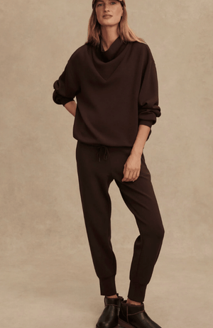 Experience refined comfort with these slim, tailored pants in a rich Coffee Bean hue. Featuring a cuffed hem for a polished look, an elasticated waistband with an internal drawcord ensures a perfect, customized fit. Practical side and back pockets enhance functionality, making these pants an elegant choice for everyday wear. Pair effortlessly with the HAWLEY DoubleSoft® top for a sophisticated ensemble that balances style with ease.