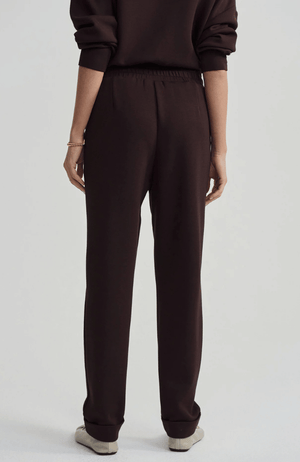 Crafted with meticulous attention to detail, these tailored trousers embody understated sophistication. The refined slim silhouette flows into a graceful rolled cuff—a signature design element that elevates the everyday essential. Precision-engineered with shaped pockets and strategic front and back darts at the waistband, every seam speaks to superior construction. The coffee bean hue offers timeless versatility, pairing effortlessly with our DoubleSoft® knitwear for an impeccably curated wardrobe
